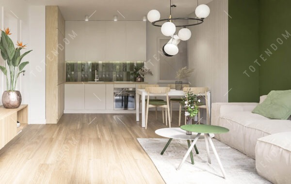 Kuchnia połączona z salonem i prostokątnym stołem z krzesłami to idealne miejsce do spotkań z rodziną i przyjaciółmi. Połączenie kuchni i salonu tworzy przestronną i otwartą przestrzeń, która zachęca do spędzania czasu razem. Prostokątny stół z krzesłami stanowi centralny punkt w tej przestrzeni, zapewniając wygodne miejsce do spożywania posiłków i rozmów.