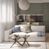 Ta jasna łazienka utrzymana jest w białej tonacji. Wiszące WC zostało umieszczone w dogodnej lokalizacji, optymalizując przestrzeń i zapewniając funkcjonalność. Podświetlane lustro umieszczone nad umywalką nie tylko odbija naturalne światło, ale również dodaje przestrzeni i stylu. Kontrastowe szafki w innym kolorze stanowią interesujący akcent, oferując zarazem praktyczne miejsce do przechowywania. Kabinowa prysznicowa zapewnia komfortowe miejsce do kąpieli. Na blacie znajduje się umywalka, tworząca harmonijne połączenie z resztą łazienki.