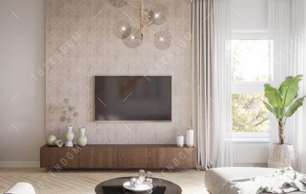 Ten salon jest przykładem stylowego i wyjątkowego wnętrza. Podłoga w jodełkę dodaje mu charakteru i unikalności, tworząc interesujący wzór na podłodze. Narożna kanapa zapewnia komfortowy i funkcjonalny kącik do relaksu i spotkań z bliskimi. Modernistyczne obrazy na ścianach nadają pomieszczeniu artystyczny wygląd, tworząc wyraziste punkty centralne. Efektowny żyrandol dodaje elegancji i prestiżu, nadając wnętrzu niepowtarzalny urok.